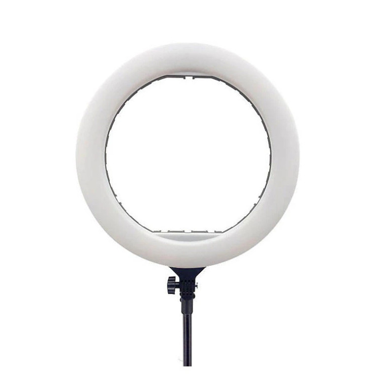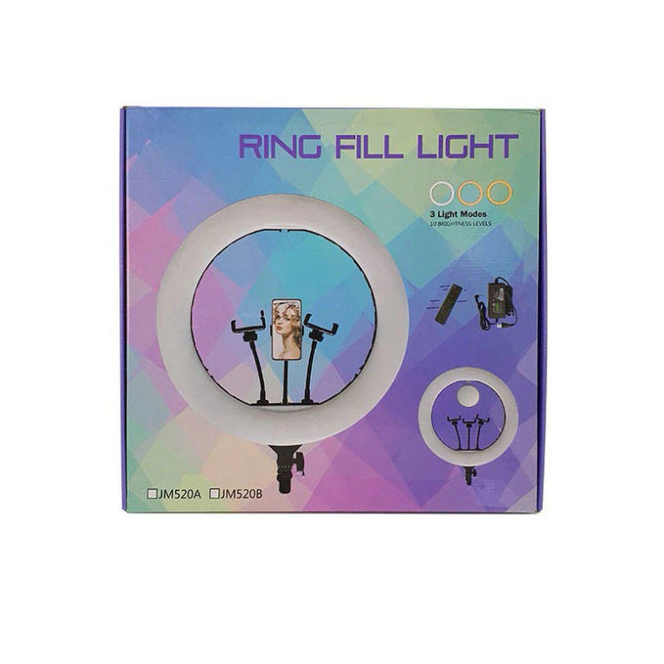 این رینگ لایت مناسب عکاسی و تولید محتوا،استفاده در سالن های زیبایی و تتو و ناخن است .این رینگ لایت با قطر 50 سانتی متر و با قدرت 60 وات قابل استفاده با آداپتور و برق شهری است.دارای 1 عدد پورت USB جهت شارژ همزمان موبایل حین کار با رینگ لایت میباشد به همراه 3 عدد هولدر موبایل قابل انعطاف جهت استفاده هم زمان 3 عدد گوشی همراه برای مواقعی که نیاز داشته به صورت هم زمان ویدئو زنده خود را در 3 اپلیکیشن اینستاگرام،یوتیوب و … داشته باشید.دارای 3 هات شو جهت نصب انواع میکروفون،آینه و کلیه تجهیزات دارای کفشک است دارای ریموت کنترل جهت کنترل از راه دور رینگ لایت میباشد.