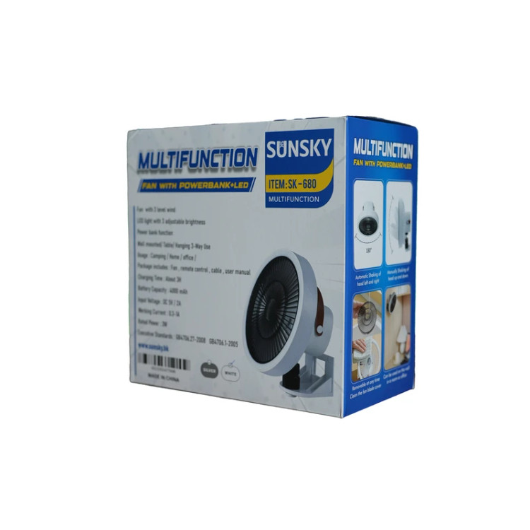 پنکه شارژی سان اسکای مدل SK-680 ظرفیت 4000 میلی آمپر ساعت
